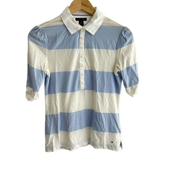 - トミーヒルフィガー TOMMY HILFIGER 七分袖ポロシャツ サイズS - 白×ライトブルー レディース 美品 トップス