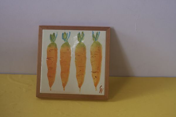 - デンマーク トリベット Northroup / Denmark ニンジン 木製の枠に入った陶板 鍋敷きや飾り用/26N6.19-33
