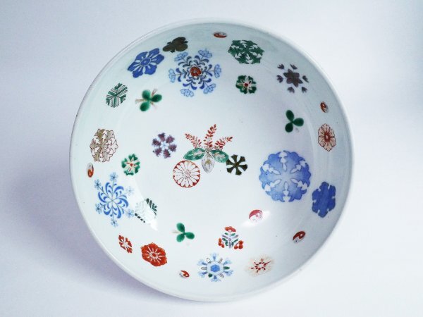 - 印判 色絵 桐紋 雪輪に花散らし 中鉢 NO.A6-4654