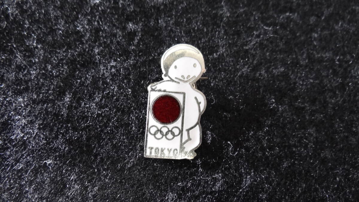 > 即決 1964 10月1日新幹線開通 漫画家 清水崑 デザイン 東京オリンピック 東京五輪 カッパ 日の丸 バッチ バッジ キャラクター 記章 河童