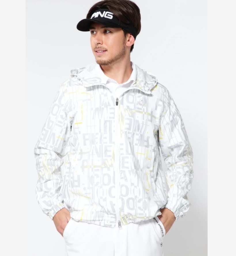 - 即決新品 PING GOLF デジタルノイズプリントリップ 撥水総裏メッシュ フーディージャケット ホワイト Sサイズ Mサイズ相当ピンゴルフ