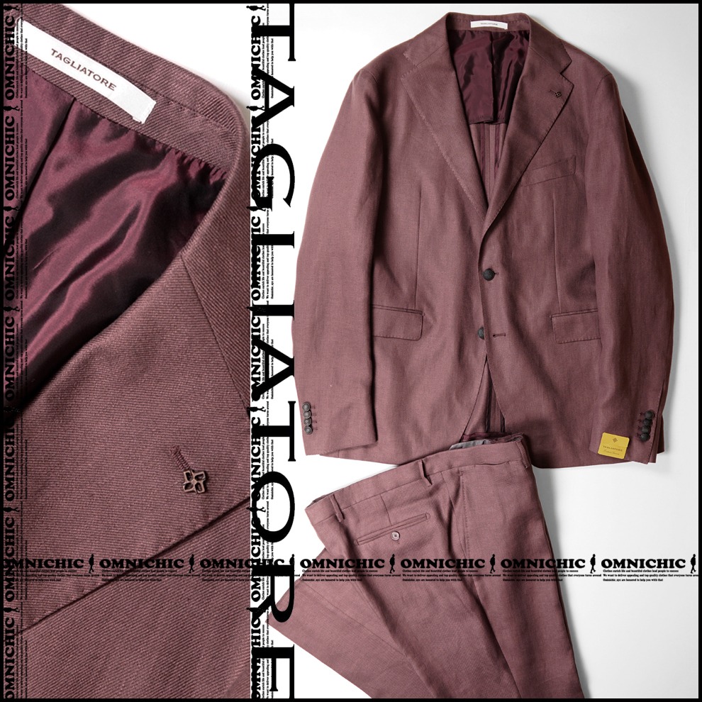 - 最高級PINO LERARIO/リネン100%■新品/春夏【TAGLIATORE】タリアトーレ/色気漂う麻の風合い/極上ワインソリッドスーツ54/ジャケットパンツ