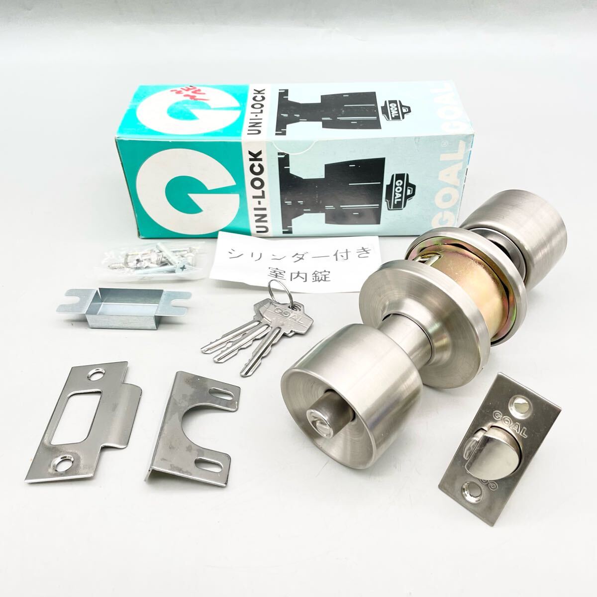 > [新品 未使用品] ゴール ユニロック ドアノブ ULW-5E BS60mm 扉厚25-37mm GOAL 円筒錠 ステンレス トイレ 浴室 プッシュ式 鍵 金物屋 在庫