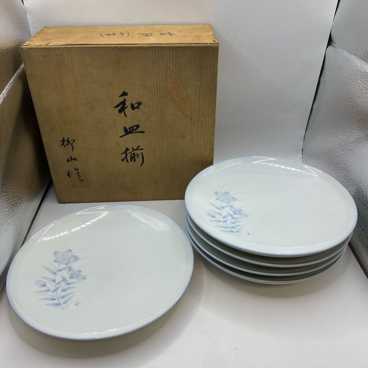 - M0704706B 有田焼 和皿揃 柳山作 中皿5枚 丸皿 和食器 皿 平皿 花 工芸品 当時物 中古品 現状品