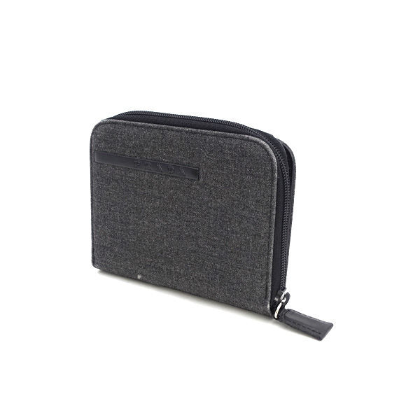 > ■ プラダ ラウンドファスナー スポーツライン 二つ折り財布 キャンバス グレー (0990015047)