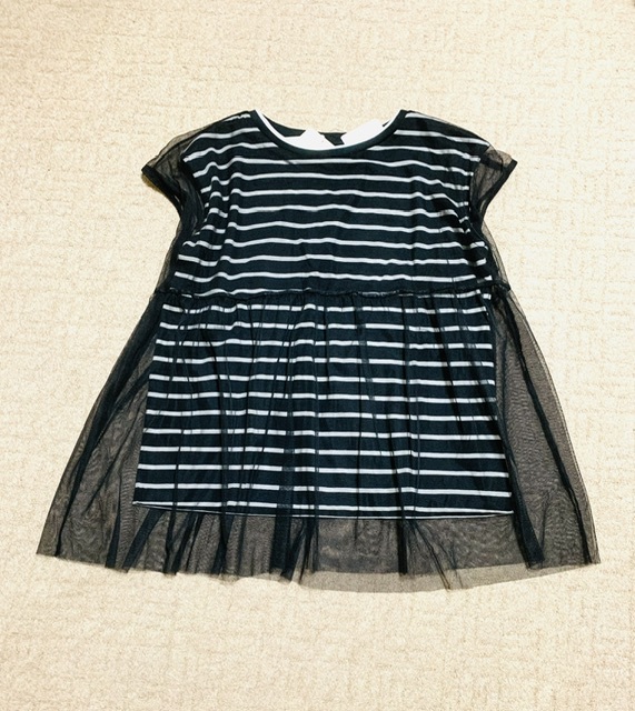 > 未使用★ タグ付★ オーバーチュールカットソー 黒 L コーデTシャツ 重ね着調 Tシャツ部分イン可 自宅洗濯可 ボーダー 自宅保管