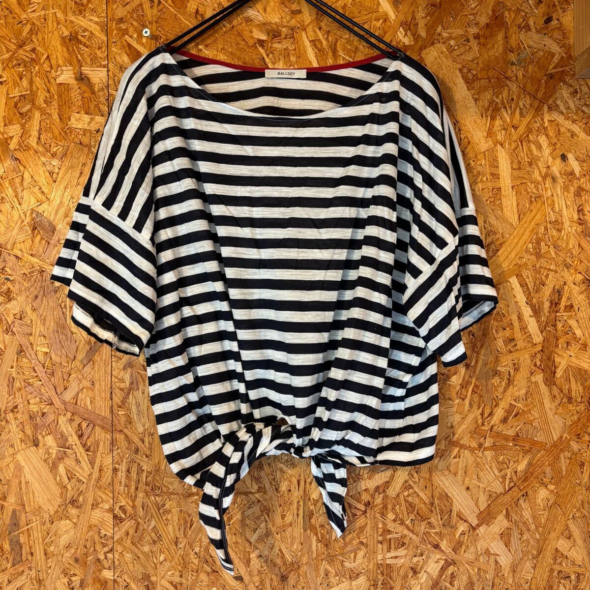 - 美品 BALLSEY 日本製 ボーダー カットソー 半袖 ネイビー リネン 半袖Tシャツ 前絞り トップス レディース 4657