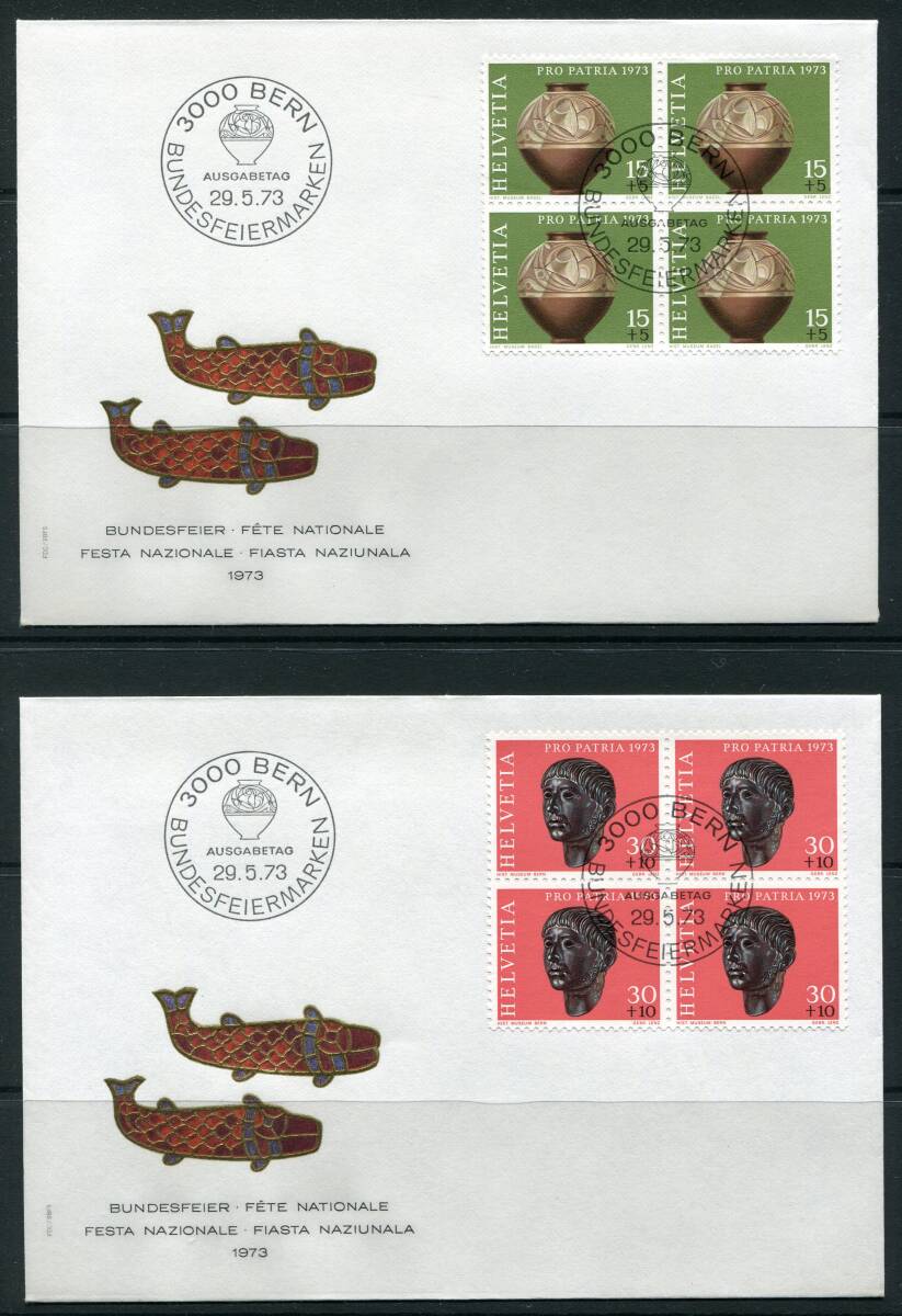 - スイス 1973年 社会福祉 美術品 ③ 4種完 田型 FDC 初日カバー z8440