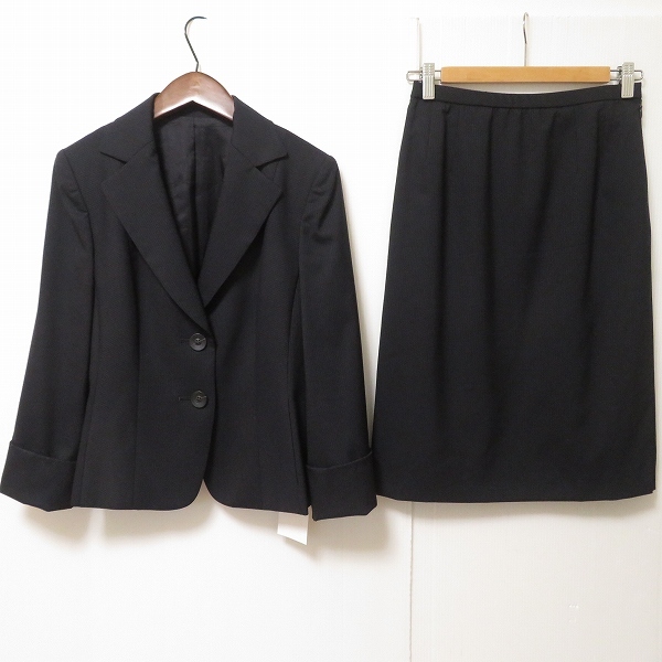 > #anc レリアン Leilian スカートスーツ 9 濃紺 ピンストライプ レディース [950383]