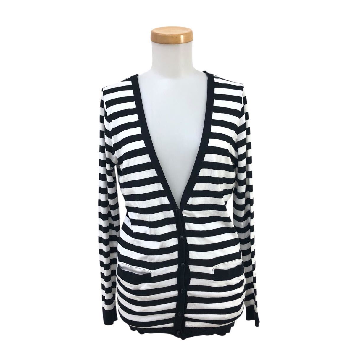 - Nm312-9 MACKINTOSH PHILOSOPHY マッキントッシュフィロソフィー ボーダー 柄 Vネック ニット カーディガン トップス 白 黒 レディース 38