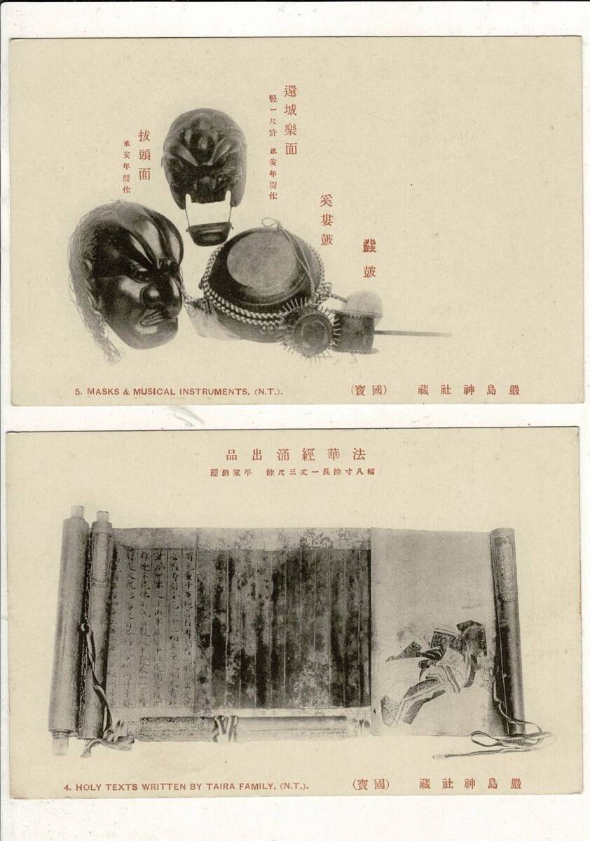 - *厳島神社蔵 国宝 レトロ絵葉書2枚 抜頭面など/法華経涌出品 萬国郵便聯合端書 YR003
