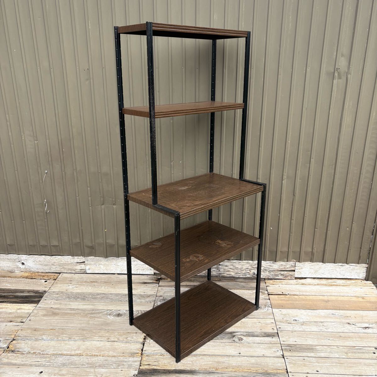 - アメリカビンテージ 木目調×ブラック スチールシェルフ ガレージ収納 作業道具