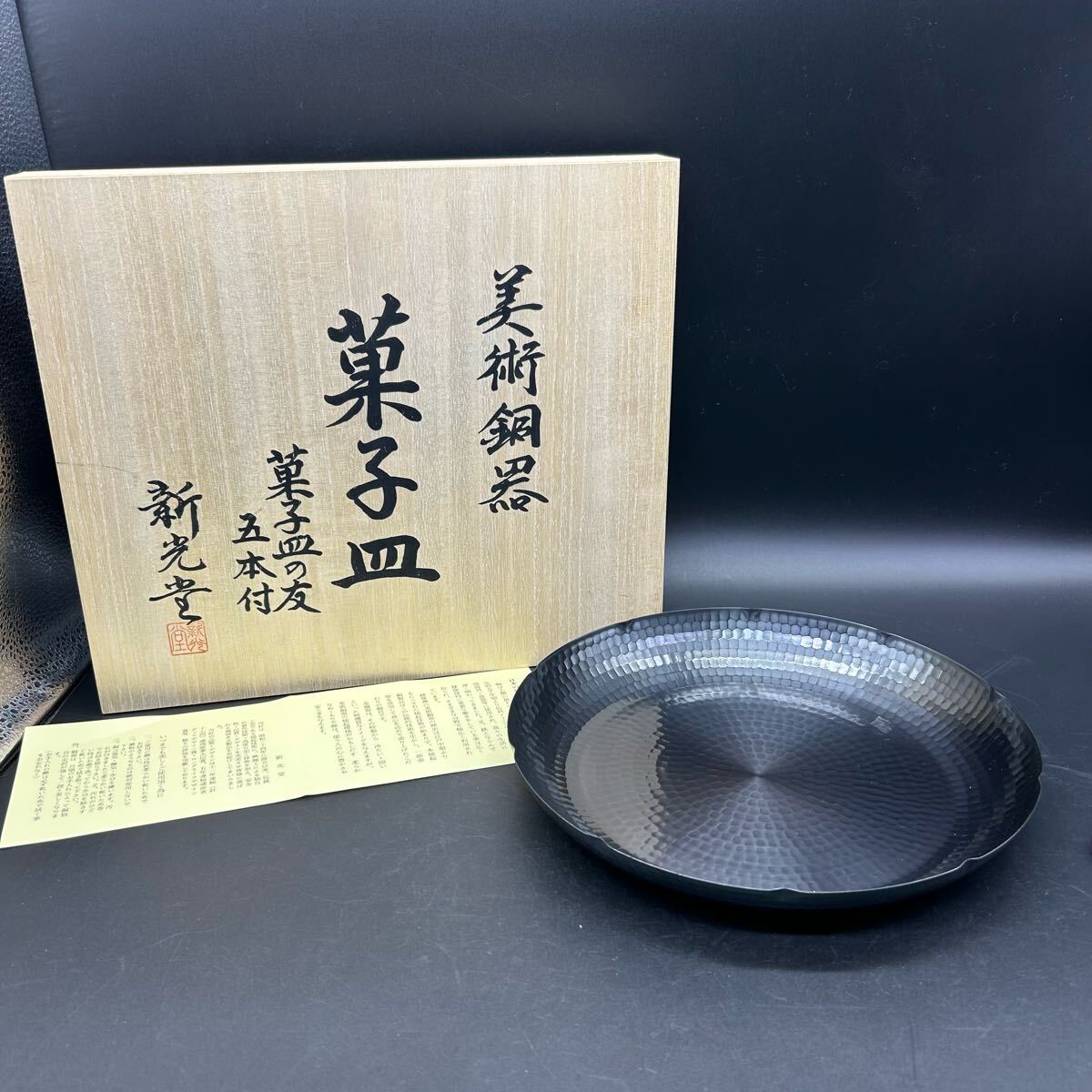 - 新光堂 美術銅器 純銅 鎚目 菓子皿 菓子皿の友 菓子器 輪花鉢 ヨ19