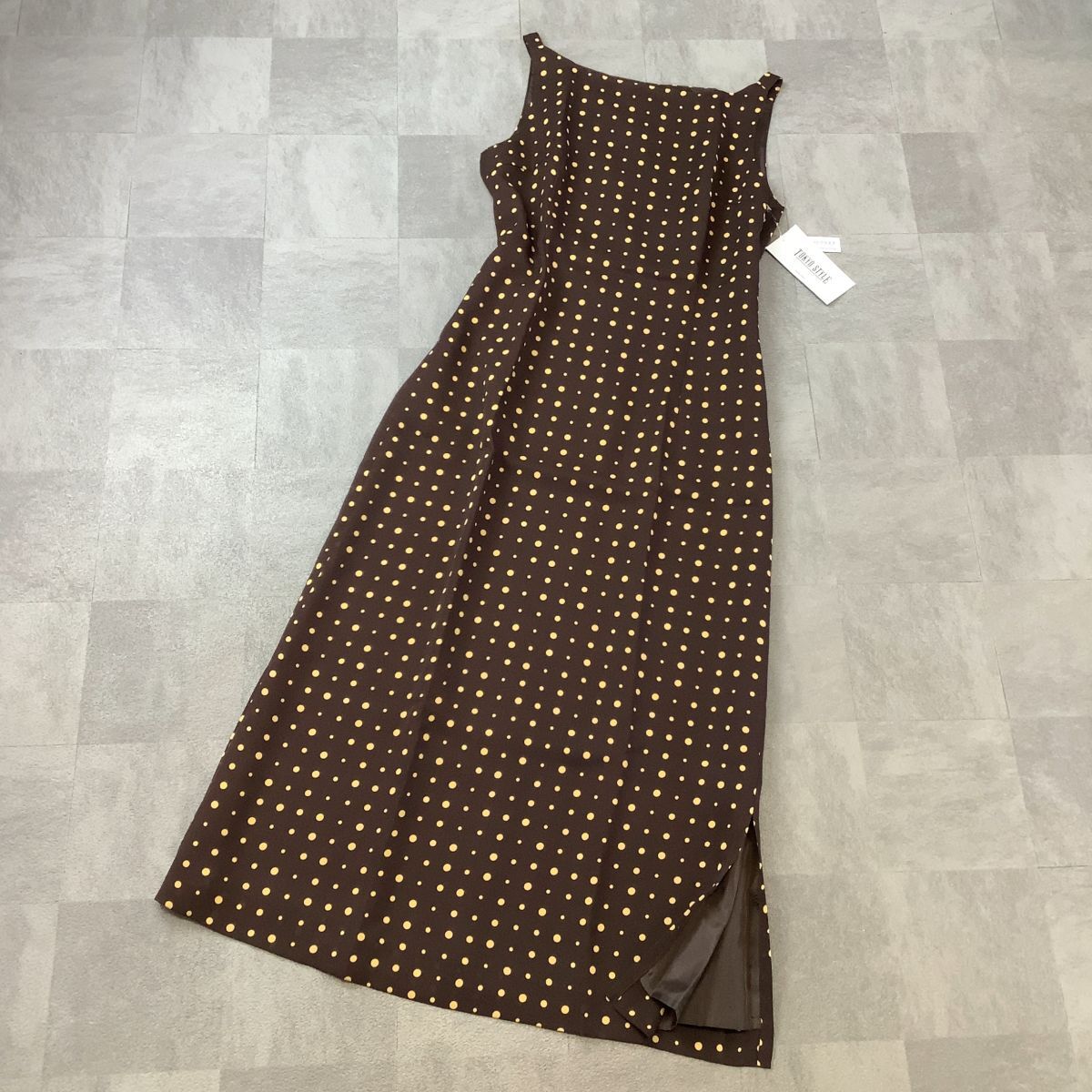 > 【新品 タグ付き】TOKYO STYLE 東京スタイル ドット柄 ロング ノースリーブワンピース レディース L ブラウン
