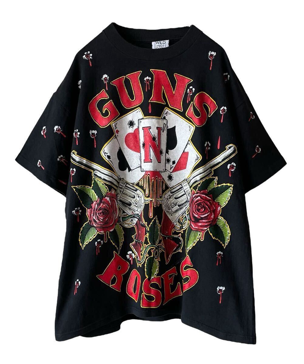 - レア!! 美品!! 90s USA製 guns n' roses ガンズ&ローゼス ローズ トランプ 銃弾 総柄 両面 tシャツ size L ビンテージ VINTAGE MADE IN USA