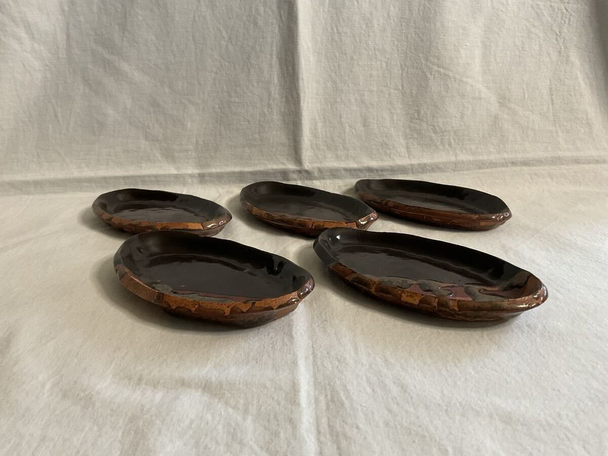 - ■■ 楕円形 小皿 鉄釉 作家者 5寸 5客