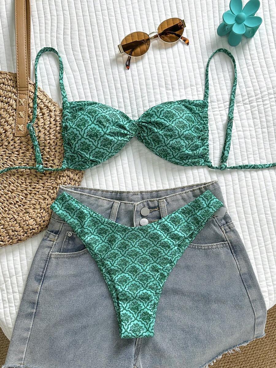 - レディース 水着 ビキニセット ランダムプリント カットアウト 水着ビキニセット レディース サマー