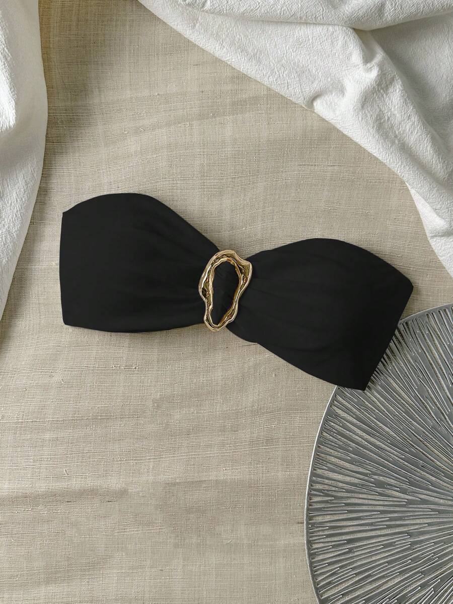 - レディース 水着 トップス スプリングブレイク レディース 無地 ホルターネック メタルデコレーション セクシービキニトップ 夏用