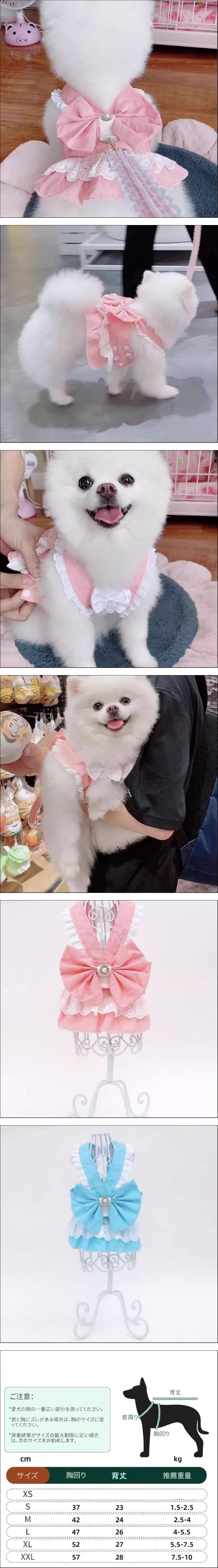 - 犬 猫用 ハーネス レースリボン付き 胸当て 花柄装飾 簡単着脱ボタン リード対応 おしゃれ 小型犬 ペット用 セーフティベスト