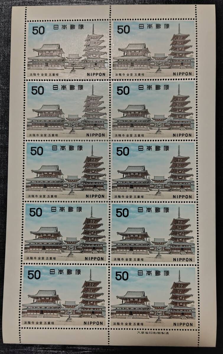 - (S-253) 第一次国宝シリーズ 50円切手 飛鳥時代 法隆寺 1967 ⑥