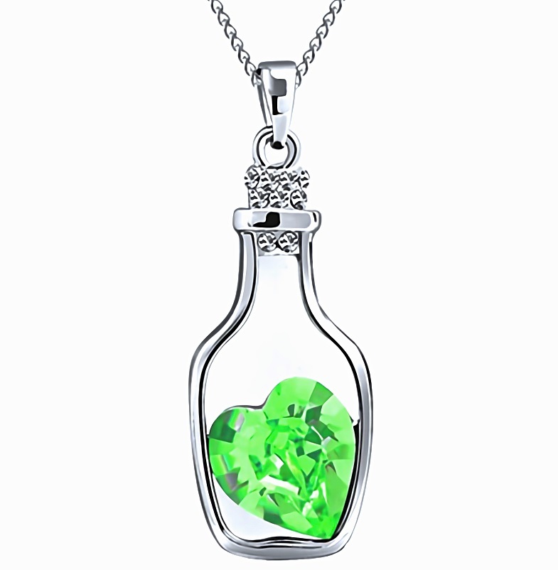 > 新品★送料無料★小瓶エメラルド手紙ハートダイヤプラチナ仕上925シルバーネックレス誕生日プレゼント旅行春夏海祭連休ギフト国内発送