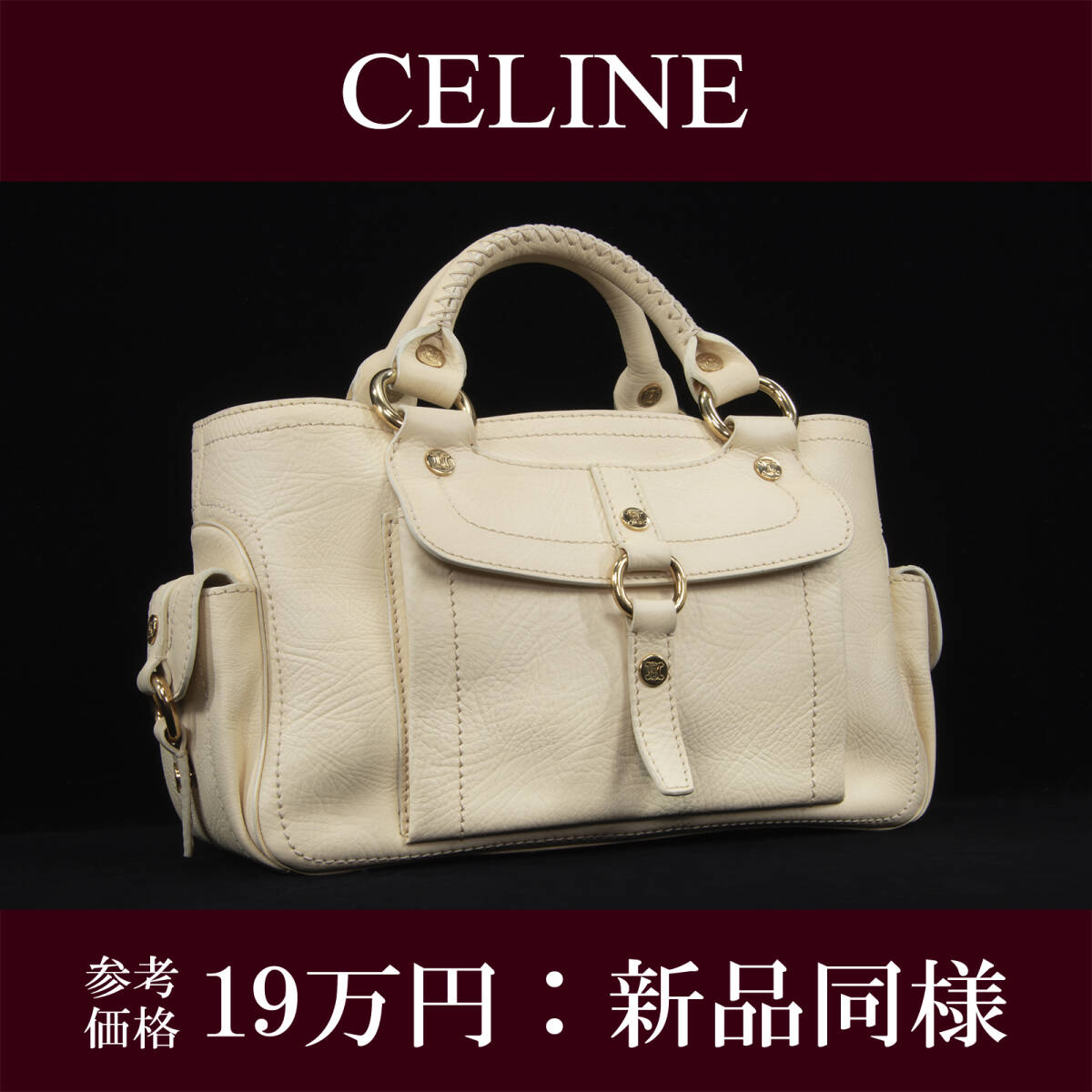 - 本物 送料無料 セリーヌ ハンドバッグ 新品同様 レディース ブギーバッグ 人気 珍しい マカダム ロゴ マーク 本革 レザー 鞄 バック F259