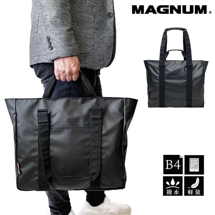 - トートバッグ メンズ レディース 大きめ B4 ファスナー付き 軽い 軽量 撥水 2wayハンドル タブレット対応 肩掛け 通勤 黒 53434
