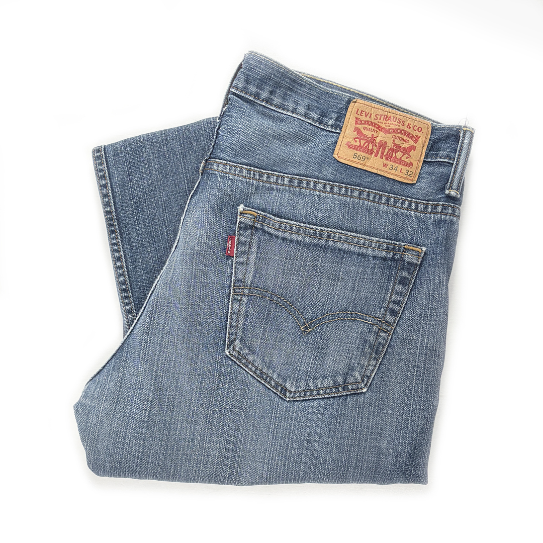 - 【送料無料】リーバイス 569 ワイドルーズストレート 雰囲気◎ ヒゲ 縦落ち ジーンズ W35相当 Levis 古着 @EA9167