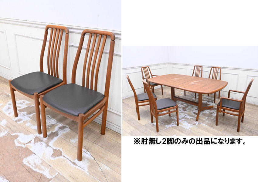 > GE164 長期保管品 ヴィンテージ D-Scan社 チーク材 本革張 肘無し ダイニングチェア 2脚セットのみ 食卓椅子 デスク◆その他は別売