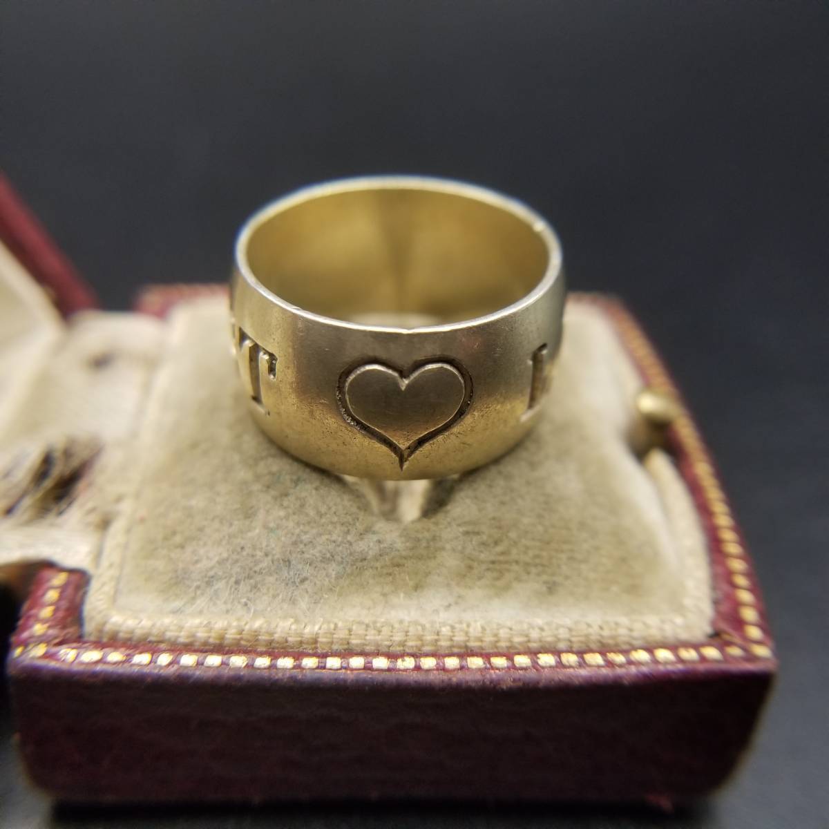 > 1992年 英国 Birmingham ホールマーク ヴィンテージ シルバー バンドリング LAST LOVE メッセージ リング 愛の言葉 銀 10Y-J⑤