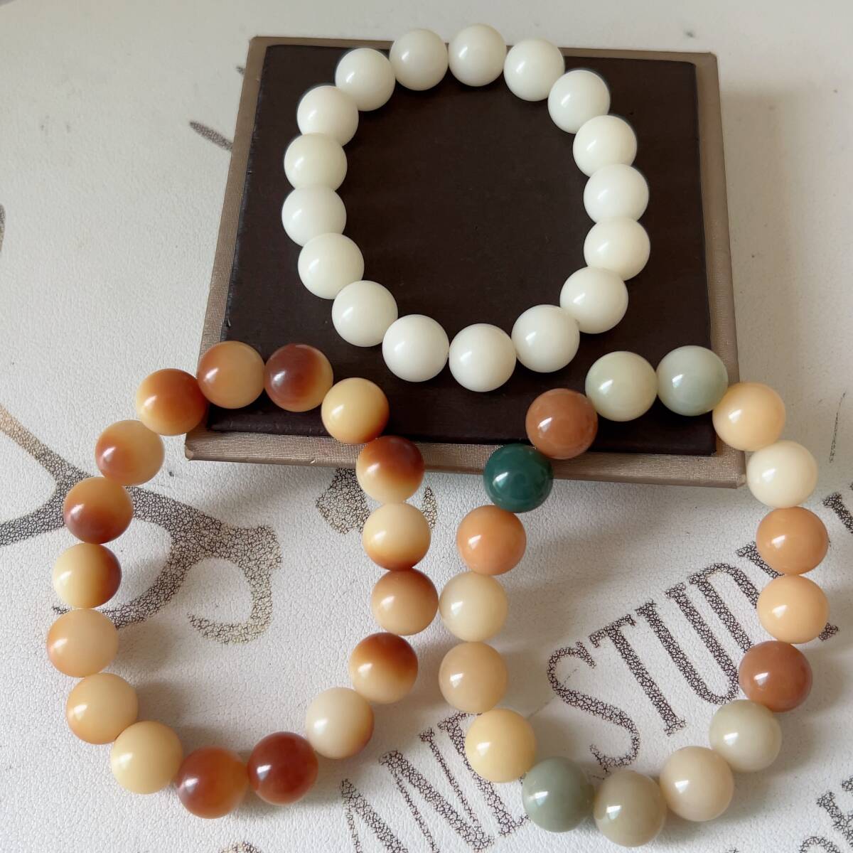 - ◇菩提樹の根◇白玉菩提など 計3点まとめ◇ブレスレット◇数珠◇念珠◇巾着袋つき◇プレゼントにも038S791