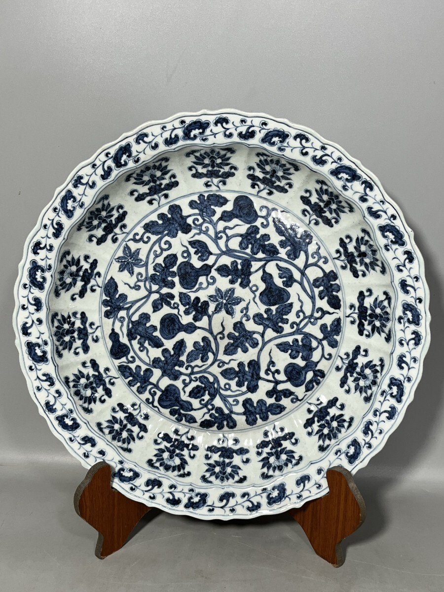 - 【積古】中国古美術 元時代 官窯 青花 紋大皿 皿 古玩 骨董 美術品 骨董品 時代物 古美術 唐物 当時物 置物 zi35