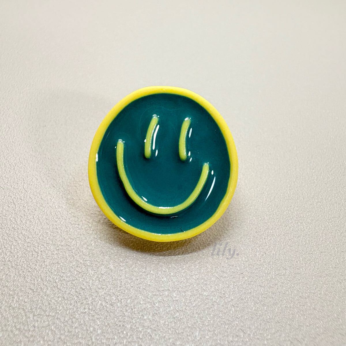 - 【ピンバッジ】スマイリーフェイス ニコちゃんマーク 手描き風 青緑