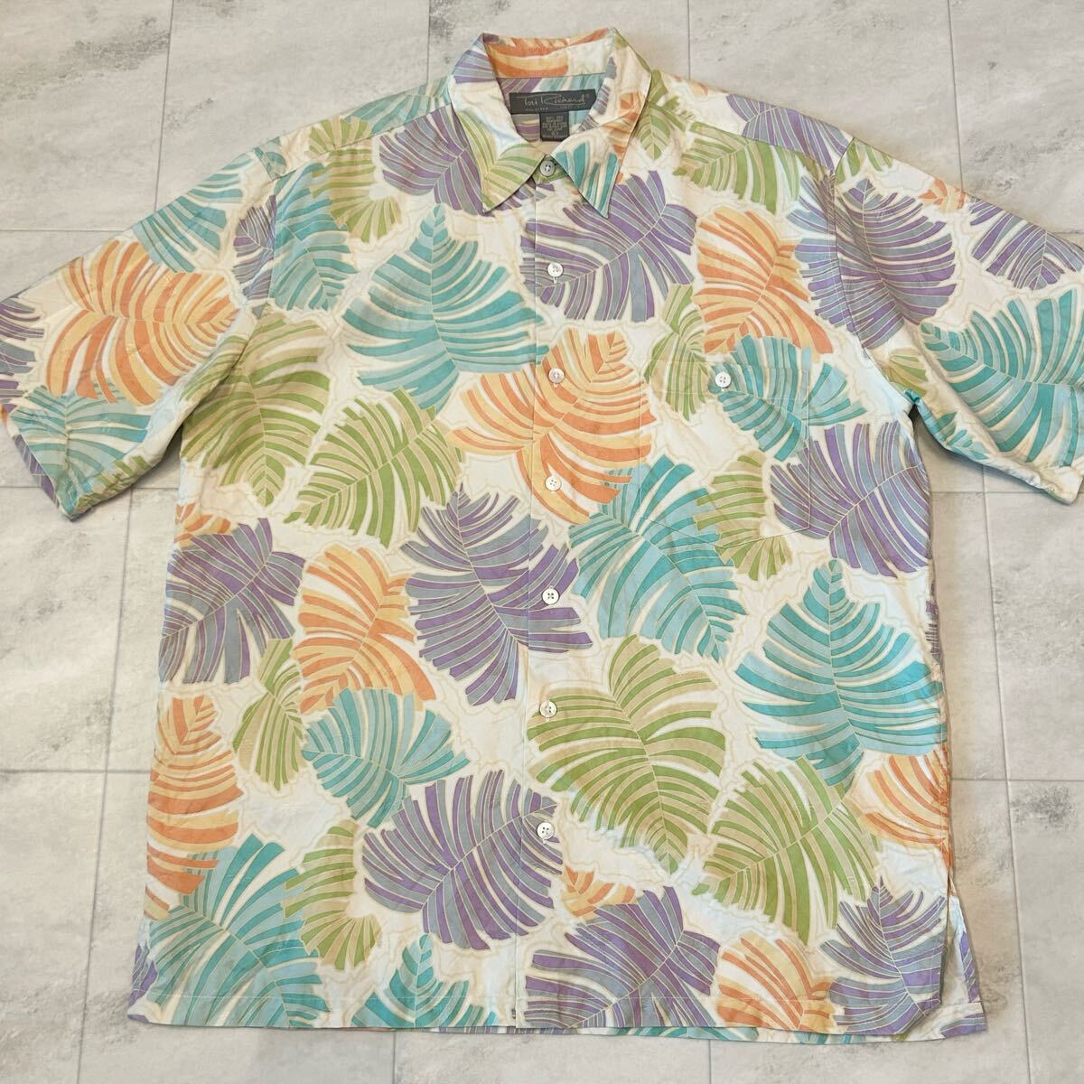 - 90s Tori Richard トリチャード HONOLULU SILK リーフ シャドー ビンテージ アロハシャツ シルク100%