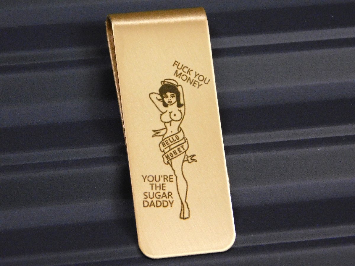 - 【USA ヴィンテージ マネークリップ】※《ピンナップガール / FUCK YOU MONEY》 真鍮製 アメリカン雑貨