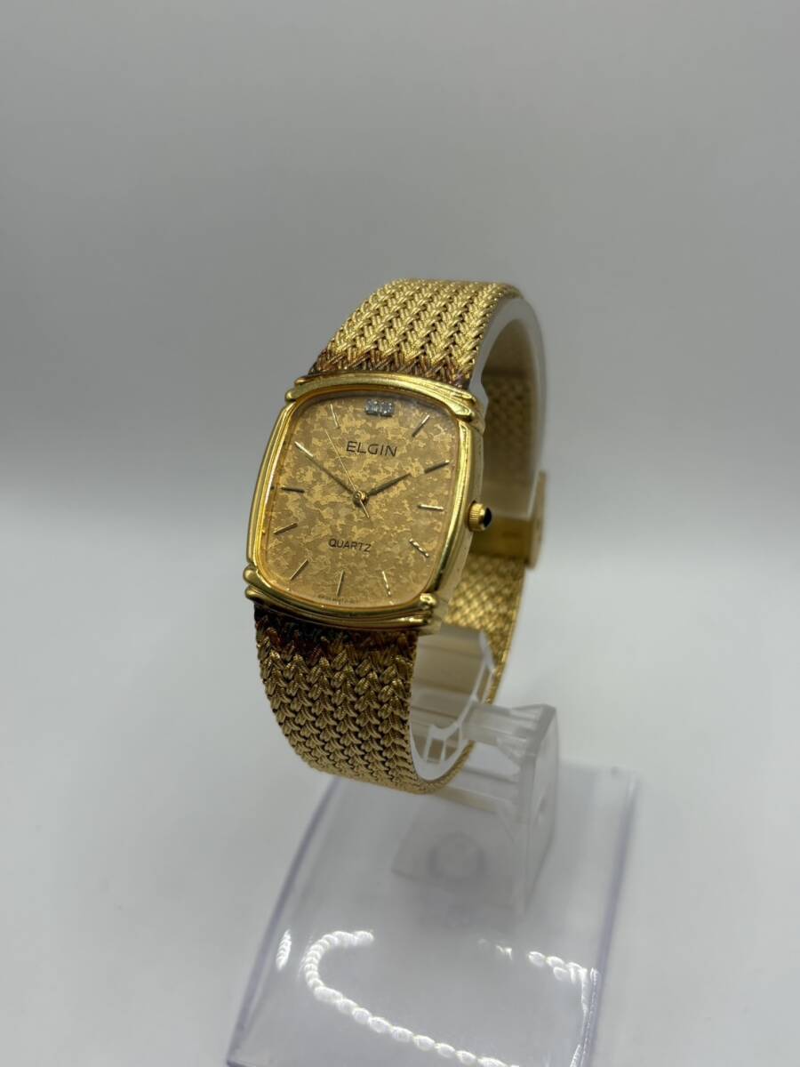 > 【高級ブランド】ELGIN FK282 レディース 2P ダイヤ クォーツ メンズ 腕時計 スクエア 文字盤金色 GOLD 金 女性用 時計 watch