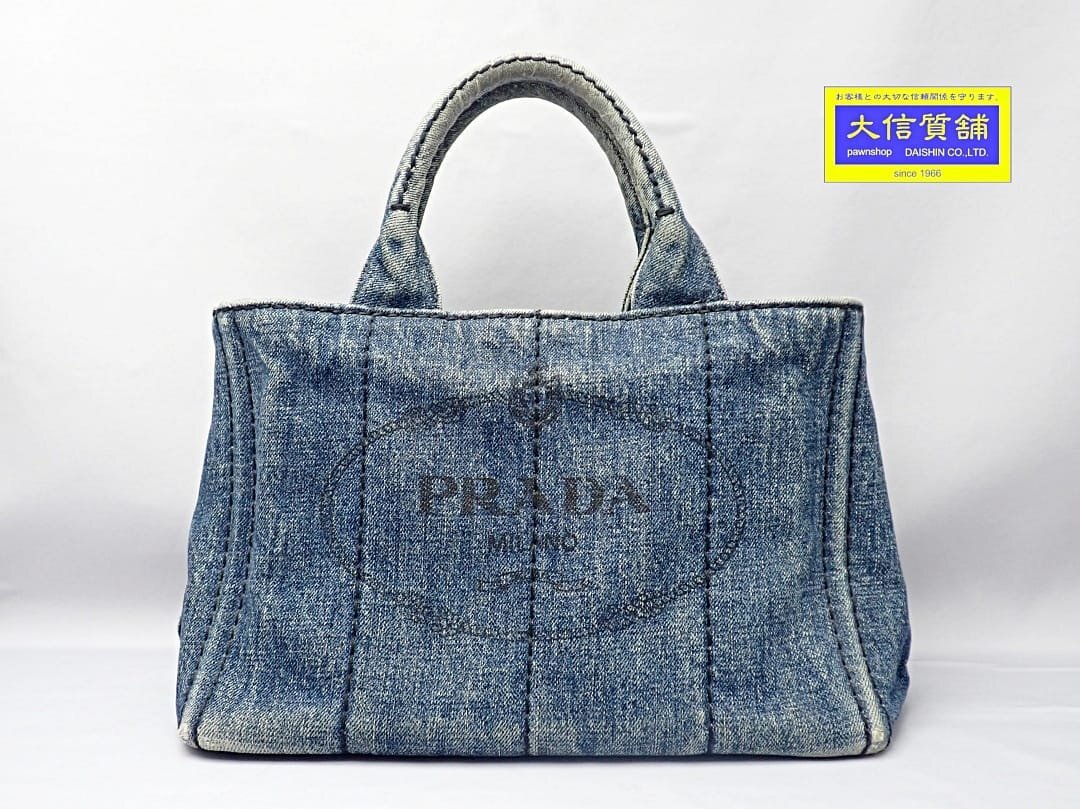 > PRADA プラダ ミニカナパ トートバッグ ハンドバッグ デニム 中古B 【送料無料】 A-8898