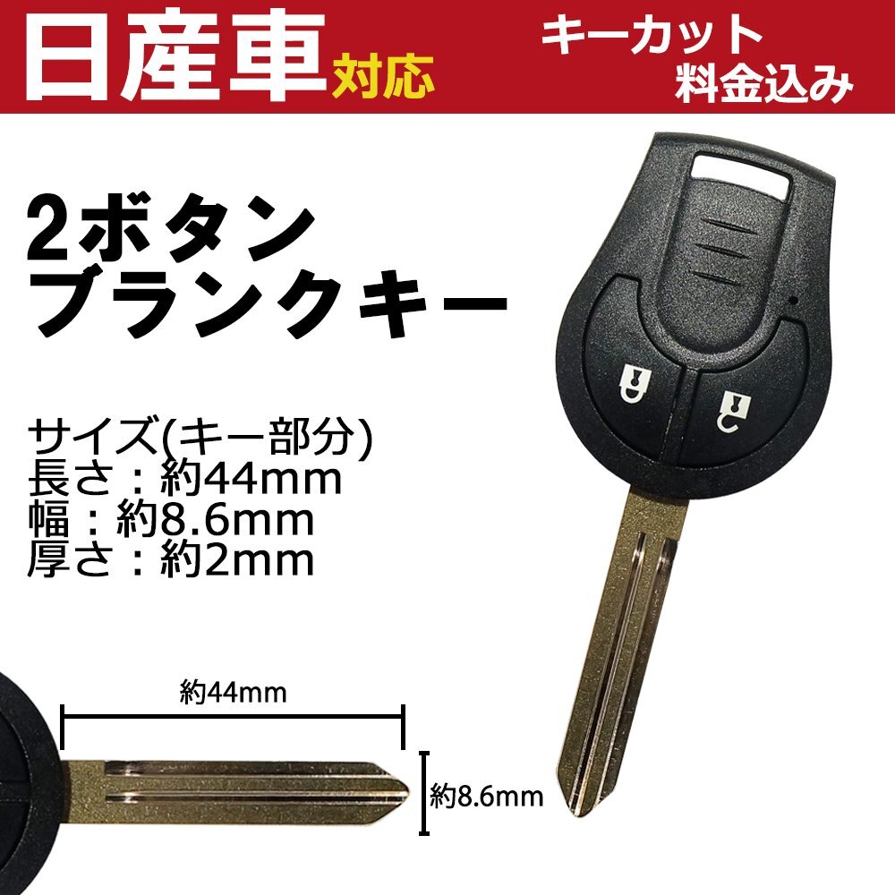 - ティアナ 日産 キーカット 加工費込み 高品質 ブランクキー 2ボタン キーレス ワイヤレスボタン スペアキー 合鍵 割れ交換 補修 M396 NSN14