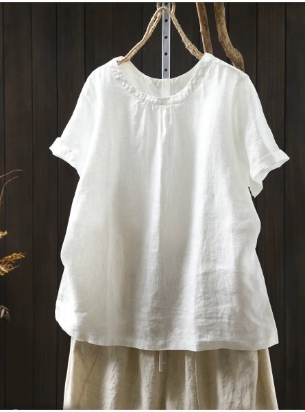 - 25 zy 半袖 チュニック トップス リネン RINEN 麻100% サラサラ 通気性肌触り抜群 ゆったり ホワイト