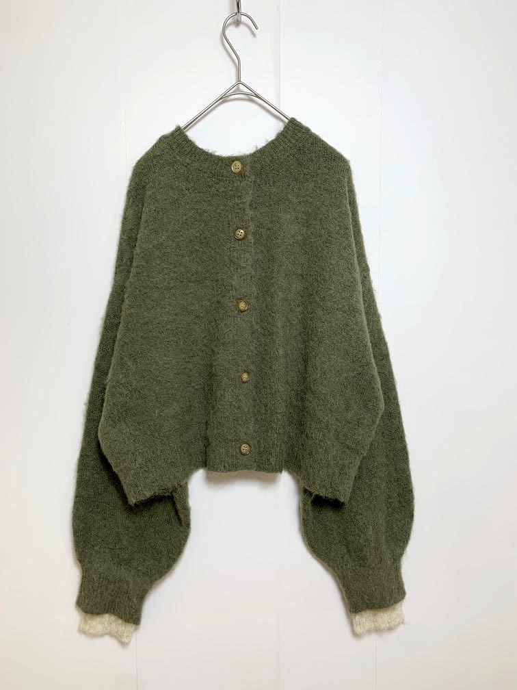 > ゆうパケットOK 美品 forksy. フォルクシー 2wayミックス起毛レイヤード配色ショートニット カーディガン sizeF/緑 ■■