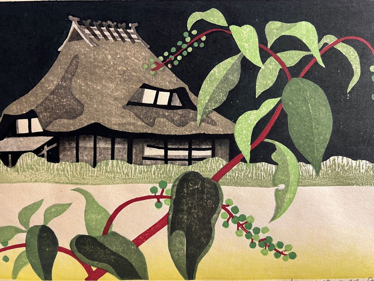 - 真作 廣長威彦 『 夏の山村 』 木版画 直筆サイン 限定50部 福島県郡山出身 白川郷 山村 農村 検索) 斎藤清 井堂雅夫 関野準一郎