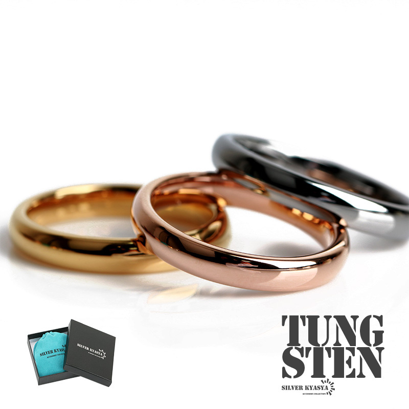 - (ローズゴールド、14号) タングステン リング ゴールド 指輪 甲丸リング シンプル シルバー ピンク 専用BOX付属
