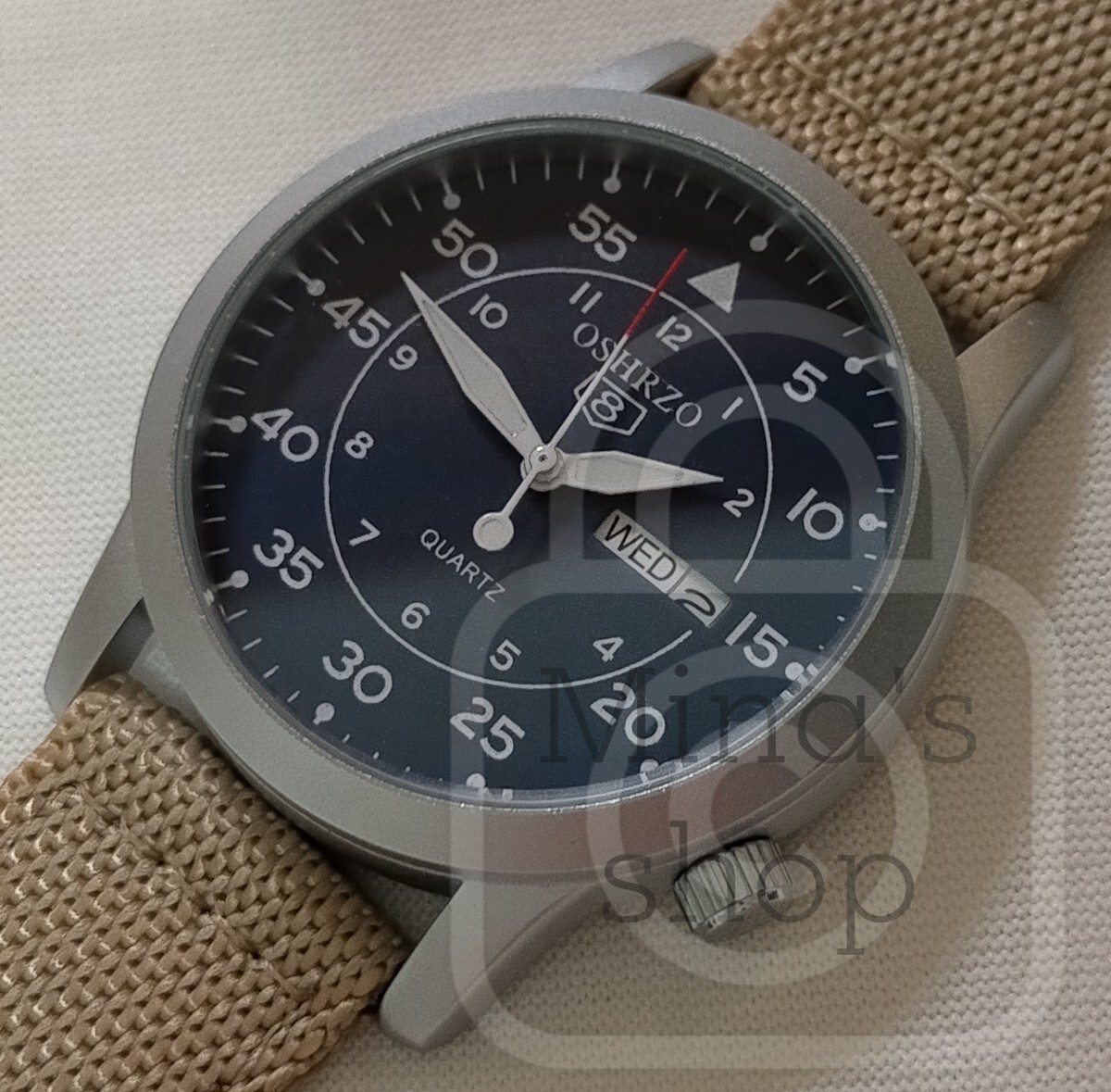 > 《期間特価2000円引き中!!》機能性特化型ミリタリーウォッチ【デイデイト機能搭載/新品】エアフォースブルー文字盤/サンドベージュバンド