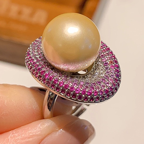 - トレンド16mm淡水真珠高炭素ダイヤモンドリング、残り時間4日までに最初に入札すると開始価格で購入可能_Kn