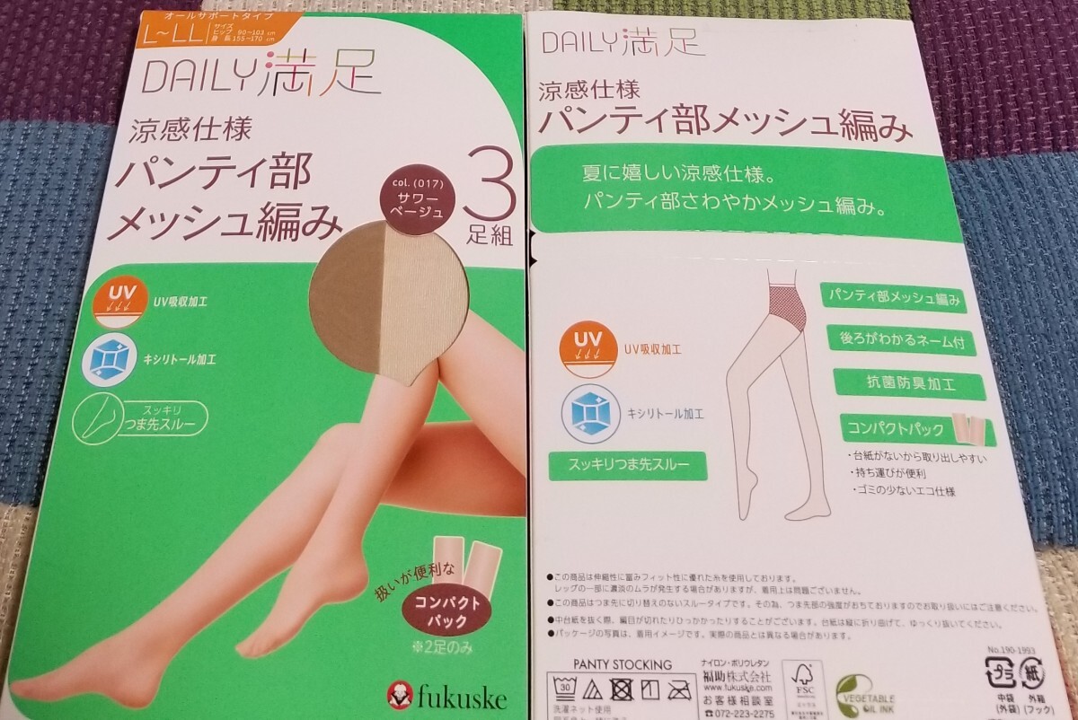 - 満足 L-LL 涼感仕様 UV ストッキング パンスト 6足セット 福助 抗菌防臭加工 キシリトール加工 フクスケ サワーベージュ