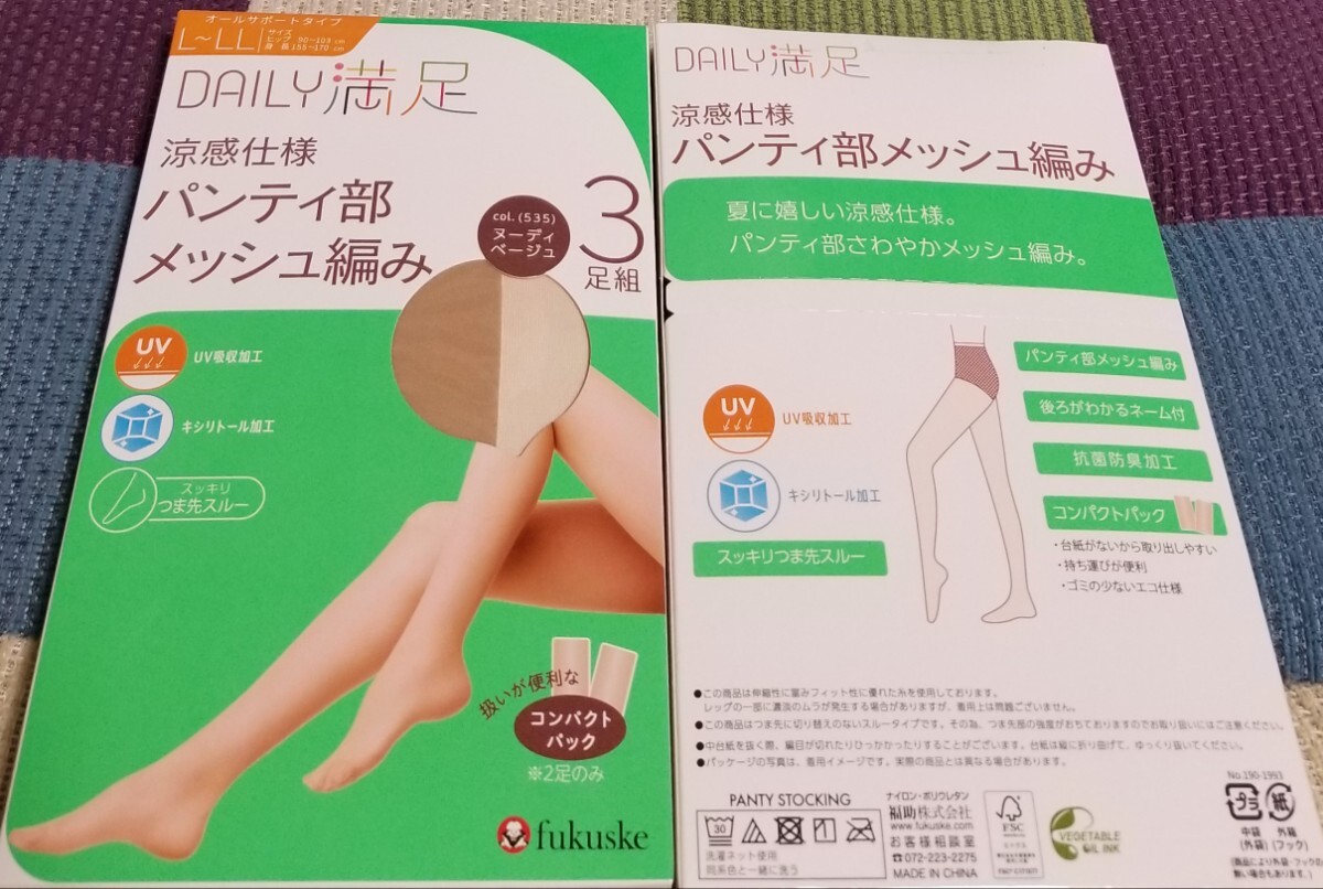 - 満足 L-LL 涼感仕様 UV ストッキング パンスト 6足セット 福助 抗菌防臭加工 キシリトール加工 フクスケ ヌーディベージュ