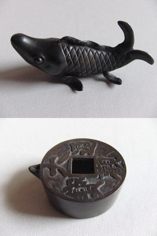 - 水差し 2個まとめて 魚 大観通宝 古銅 唐銅 書道 道具