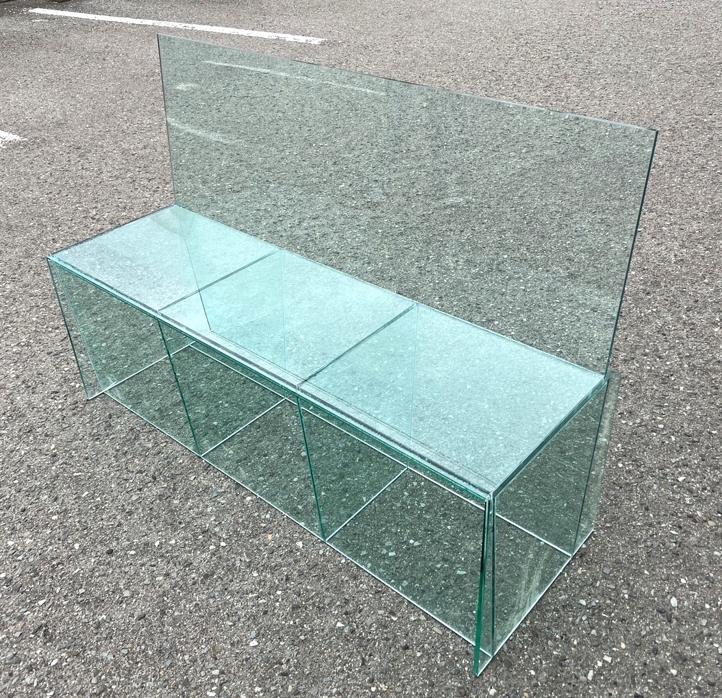 - 福井県福井市引取り歓迎!残り8台!高級オーダー品 肉厚アクリル製 3人掛け ベンチ チェア ガラス色透明 椅子 店舗 待合室 ソファ②