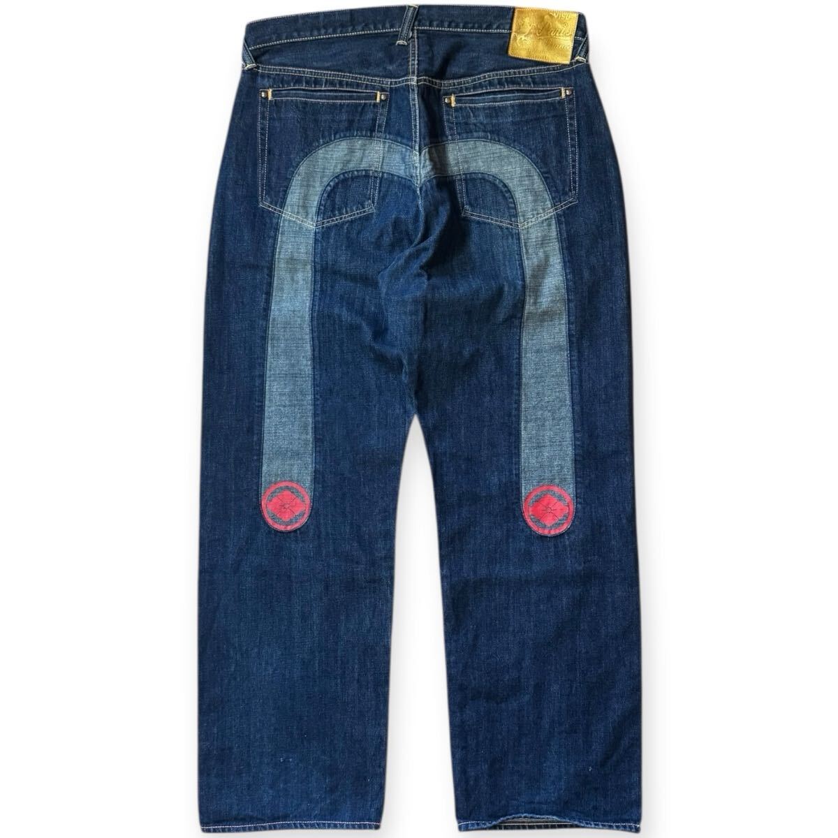 - 濃紺 EVISU 塩谷ブラザーズ 大黒 ワイドストレートデニム ビッグサイズ ボタンフライ 赤耳 w38