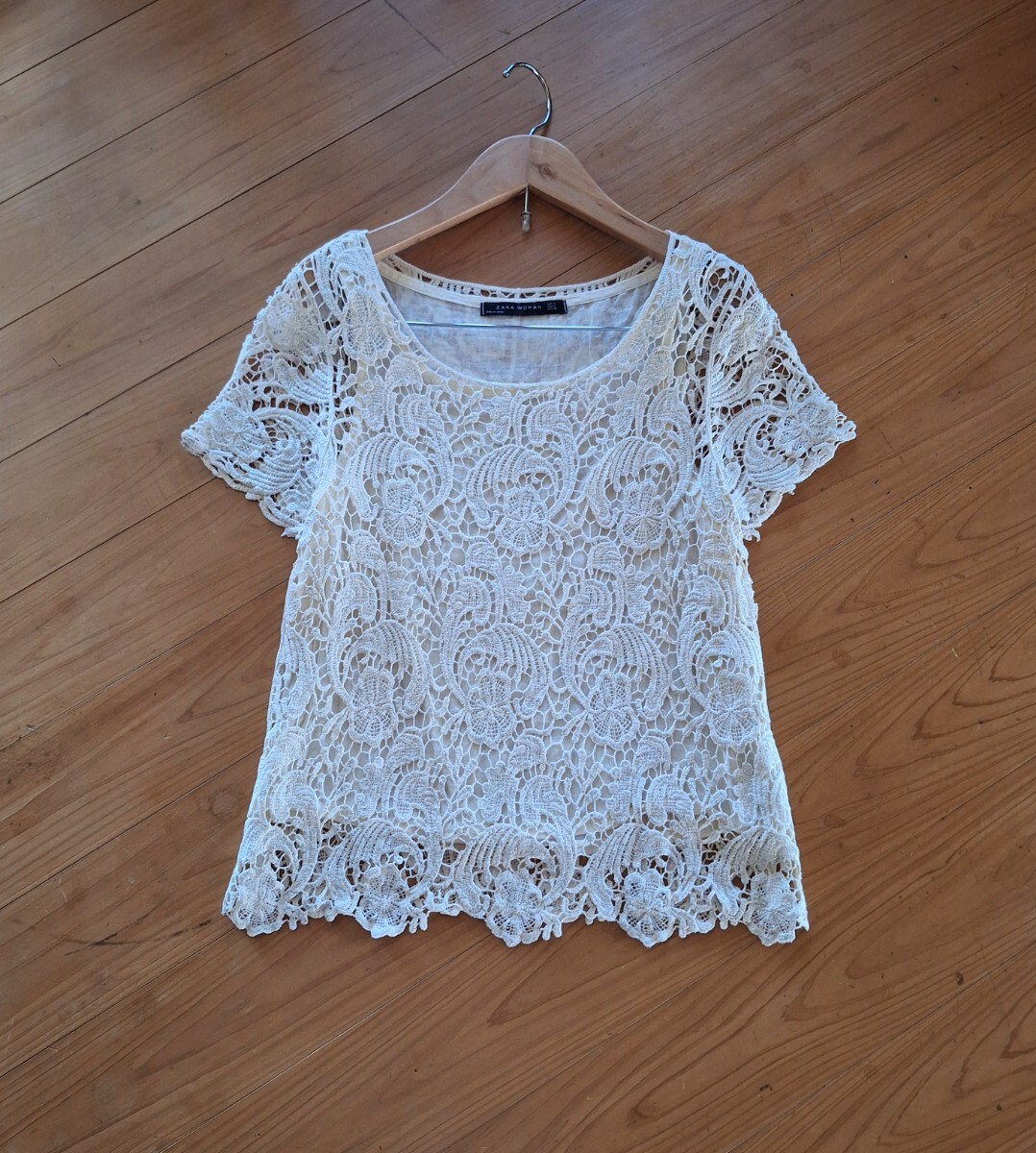 - ★ZARA WOMAN スカラップレーストップス 銀のラメ入り タンクトップ付き サイズM★